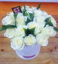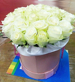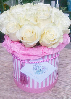 Белые цветы издавна обозначают доброе отношение, светлые чувства, нежность, чистоту и гармонию. А розы этого цвета – лучшие цветы, подходящие ребенку в честь Дня Рождения, возлюбленной на свидание или годовщину и невесте на свадьбу. Цветочная композиция в стильной голубой коробке смотрится органично, а добавление зелени обеспечивает естественность и натуральность. Запах роз улучшает настроение дарит позитив, оставляя навсегда отпечаток в памяти.